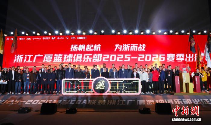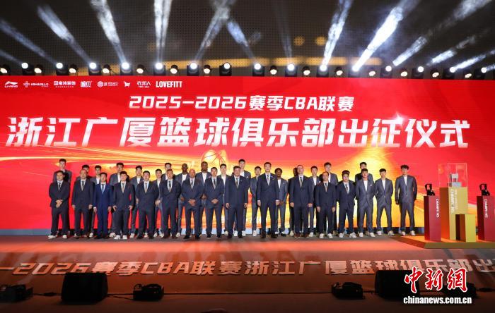 今日浙江广厦男篮2025—2026赛季重生气力明相。当日,2025—2026赛季浙江广厦篮球俱乐部出征典礼正在杭州举办,行动上赛季总冠军,浙江广厦男篮原赛季将力图卫冕。中新社记者 吴君毅 摄